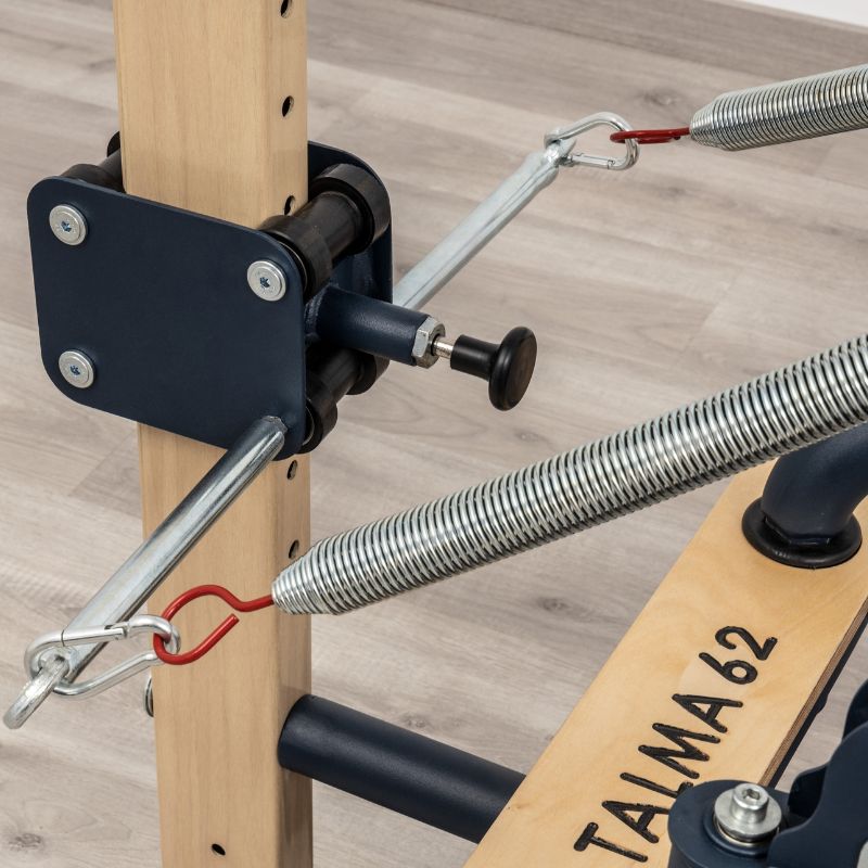 TALMA 62 Reformer – A stable, smooth-moving reformer with effortless adjustments and breathable, durable upholstery for professional studio use.